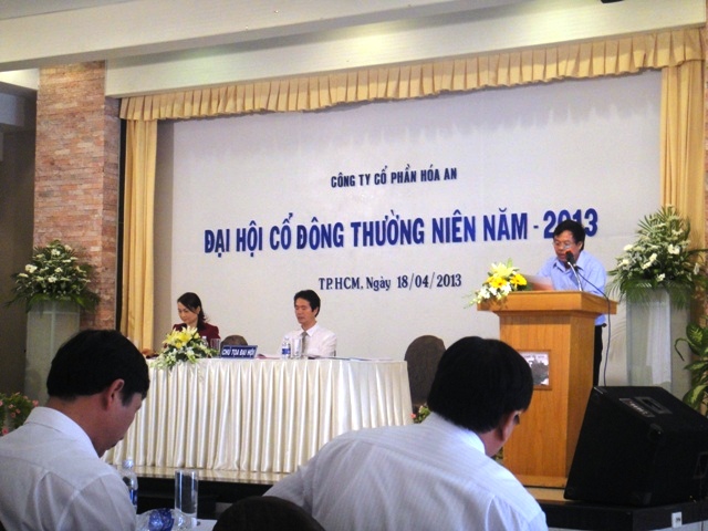 Ngày 18/04/2013 Công ty cổ phần Hóa An tổ chức họp Đại hội cổ đông thường niên năm 2013 tại Khu du lịch Tân Cảng, số A100 Ung Văn Khiêm, Phường 25, quận Bình Thạnh, TP. Hồ Chí Minh.